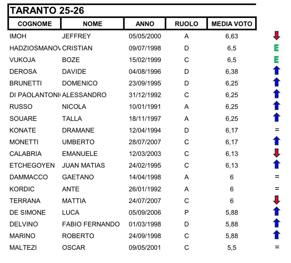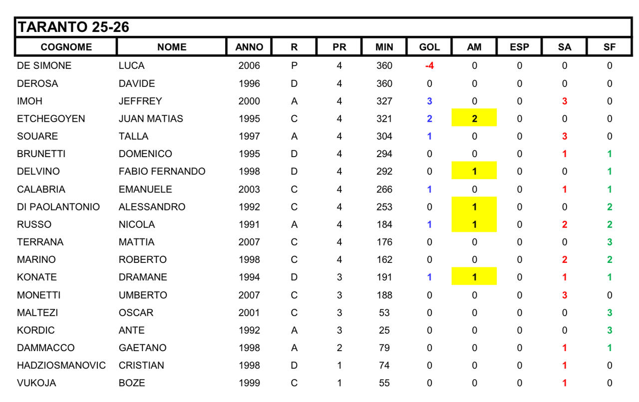 Taranto, statistiche e medie voto dopo il recupero con l’UC Bisceglie