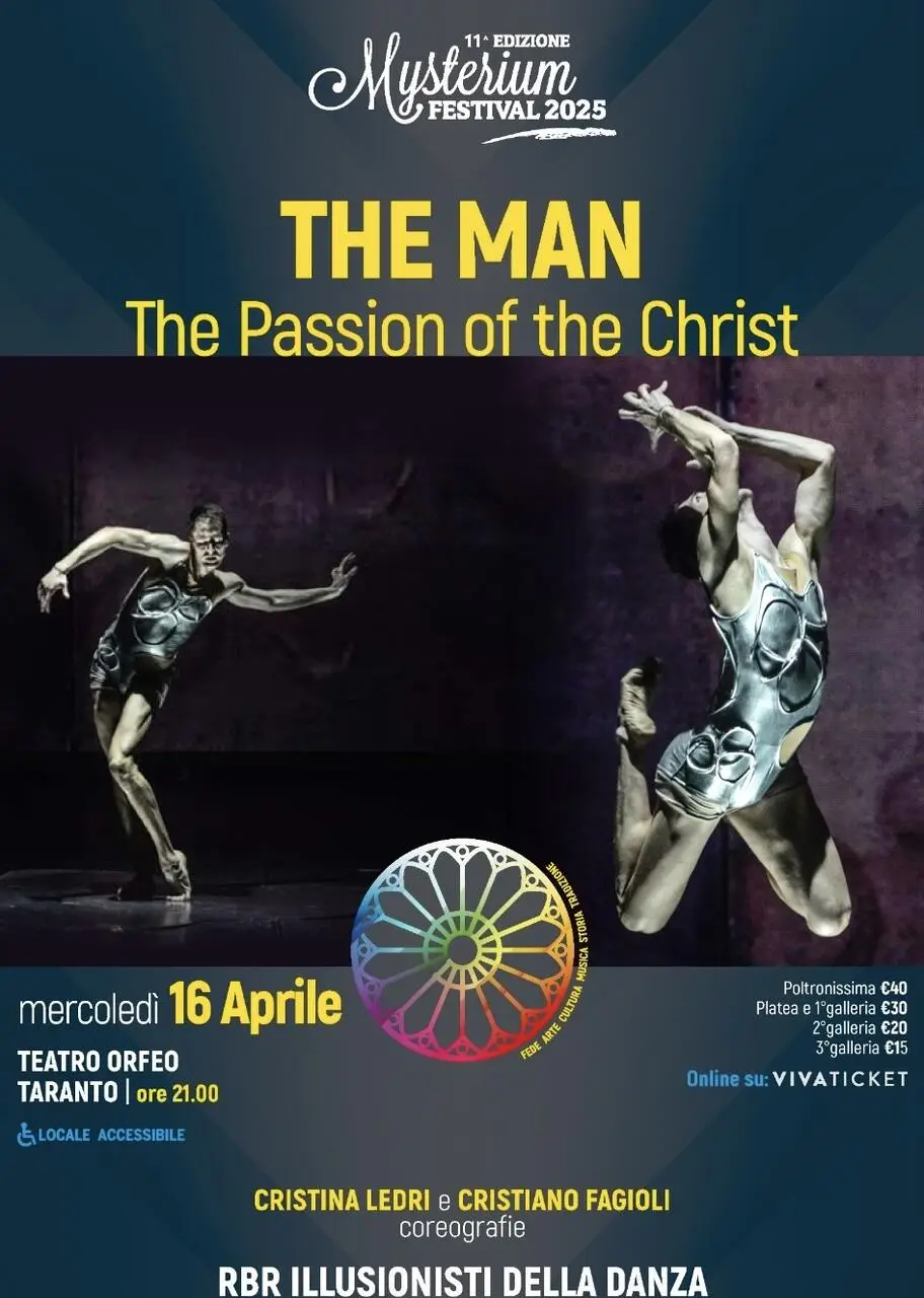 TARANTO – Continua il programma del Mysterium Festival 2025 con un appuntamento di grande impatto emotivo e visivo: mercoledì 16 aprile alle ore 21.00 andrà in scena al Teatro Orfeo lo spettacolo di danza “The Man – The Passion of the Christ”, firmato dalla compagnia RBR – Illusionisti della Danza, con le coreografie di Cristina Ledri e la regia di Cristiano Fagioli.