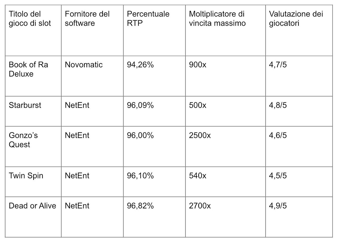 La differenza operativa tra le slot regolamentate italiane e le alternative senza licenza si concentra su tre elementi fondamentali. In primo luogo, i giochi con licenza impongono percentuali minime di RTP (Return to Player) del 92% per le slot online, garantendo tassi di pagamento verificati matematicamente. In secondo luogo, le piattaforme certificate implementano funzioni obbligatorie di protezione dei giocatori, tra cui limiti di deposito, opzioni di autoesclusione e strumenti di gioco responsabile. In terzo luogo, gli operatori con licenza italiana sono sottoposti a verifiche trimestrali indipendenti che verificano la correttezza dei giochi e la conformità finanziaria, mentre i concorrenti senza licenza operano senza supervisione esterna. I dati sulla soddisfazione dei giocatori provenienti dalle comunità di gioco d’azzardo italiane rivelano preferenze costanti per caratteristiche di prestazione specifiche. La tabella seguente presenta i dati verificati relativi ai giochi di slot più popolari tra i giocatori d’azzardo italiani nel quarto trimestre del 2025: