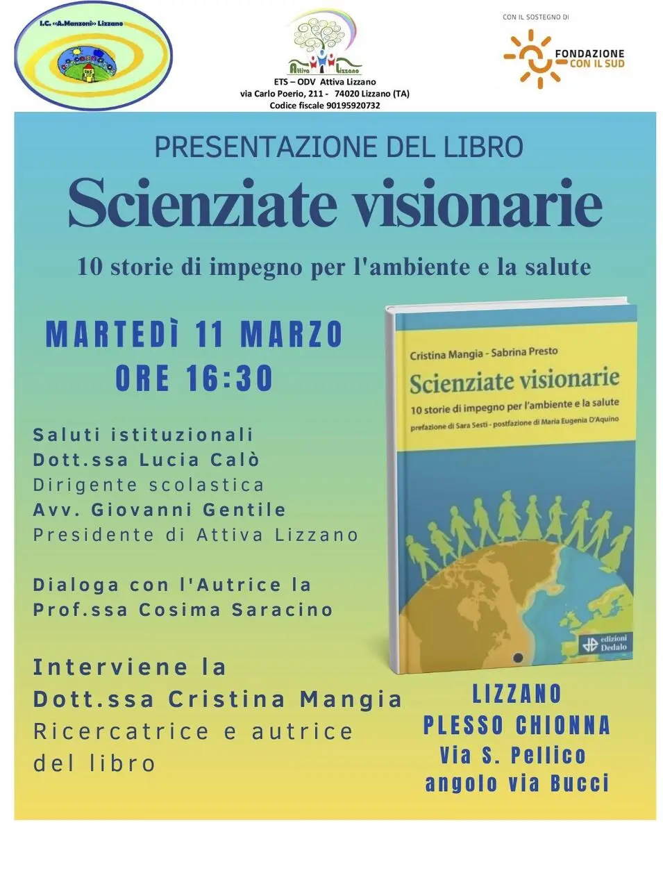 L’Associazione Attiva Lizzano, impegnata nella tutela dell’ambiente e della salute, organizza la presentazione del libro “Scienziate Visionarie“: 10 storie di impegno per la salute e l’ambiente” (Edizioni Dedalo) di Cristina Mangia e Sabrina Presto.
