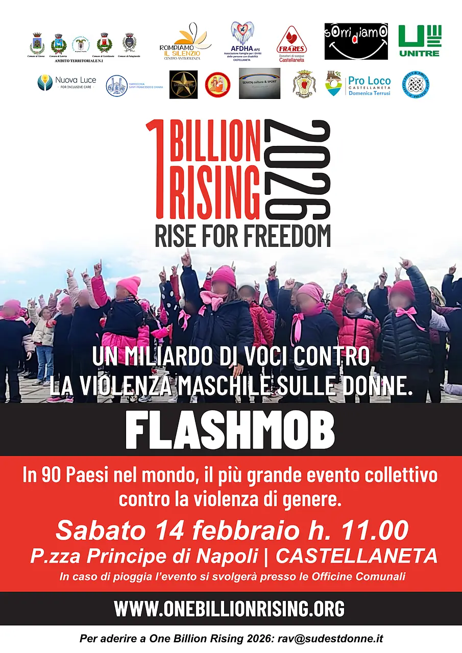 Saranno 13 le associazioni che scenderanno in Piazza Principe di Napoli di Castellaneta, sabato 14 febbraio, alle h. 11, per unirsi al One Billion Rising, il flash mob – a carattere internazionale - contro la violenza maschile sulle donne e sulle bambine.
