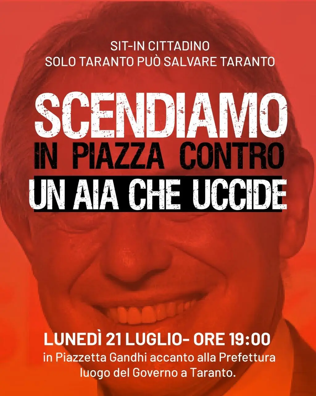 Lunedì 21 luglio, alle 19.00, Piazzetta Gandhi sarà teatro di un sit-in di protesta contro il rilascio dell’Autorizzazione Integrata Ambientale (AIA) per l’ex Ilva di Taranto da parte del Governo. Una decisione che arriva nonostante il parere contrario espresso con fermezza dal sindaco di Taranto, dal sindaco di Statte, dal presidente della Provincia e dal presidente della Regione Puglia.