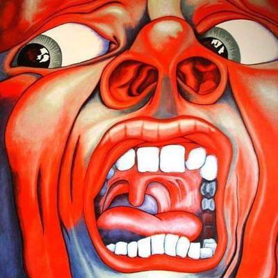 ... Greg Lake "Non dimenticherò mai il giorno che Barry arrivò ai Wessex con la copertina dell’album. Entrò con questo pezzo di tela avvolto in carta da imballo e in quel momento stavamo facendo una sovraincisione su Schizoid Man. Entrò nello studio, strappò via la carta e adagiò la copertina dell’album sul pavimento così che potessimo vederla tutti. Ci radunammo tutti intorno ed era come trovarsi a qualcosa tipo L’isola del tesoro, quando tutti stanno in piedi attorno al forziere con i gioielli, e questa cazzo di faccia urlava dal pavimento e quel che ci diceva era Schizoid Man. Non aveva niente a che fare con la Corte del Re Cremisi. Era la faccia urlante dello Schizoid Man. Tutti noi abbiamo capito all’istante che si trattava della copertina dell’album."