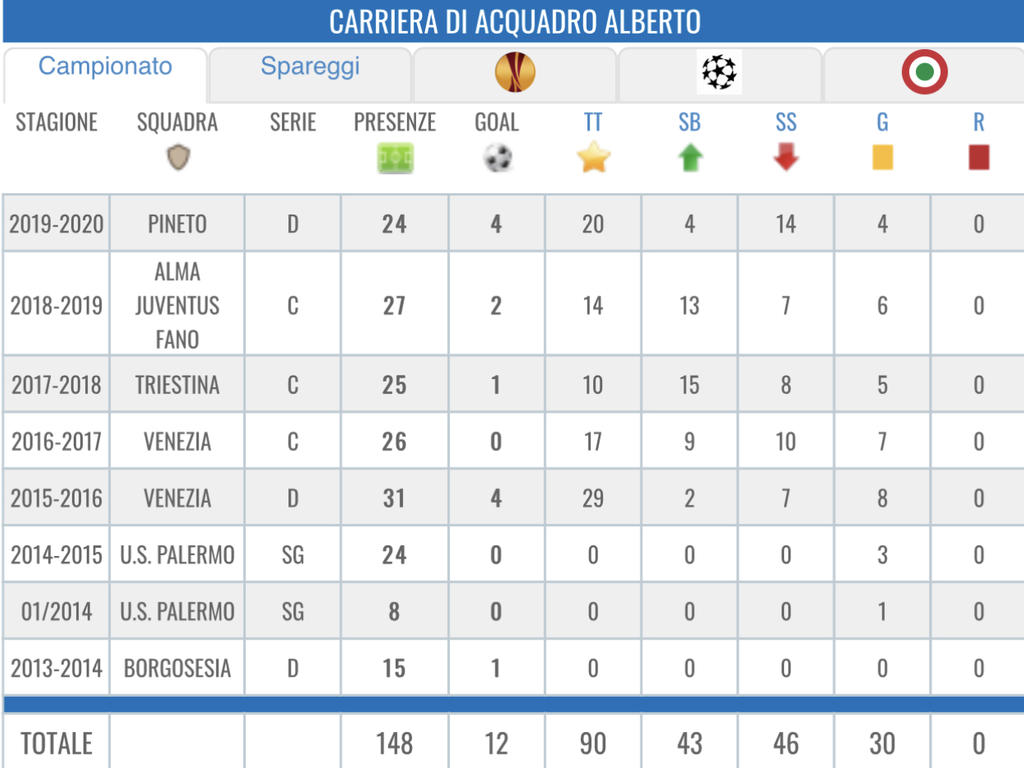 Acquisto a sorpresa del direttore sportivo Francesco Montervino. Il Taranto ha ufficializzato l'ingaggio di Alberto Acquadro, centrocampista centrale classe 1996, nella passata stagione al Pineto con cui ha collezionato 24 presenze condite da 4 gol e 9 assist. Il calciatore piemontese ha un curriculum di tutto rispetto avendo calcato anche i campi della Serie C con le maglie di Fano (27 presenze e due gol). Triestina e Venezia. Cresciuto nel Borgosesia, si è formato nel settore giovanile del Palermo. Vanta una promozione dalla D alla C con la maglia del Venezia, all'epoca allenato da Giancarlo Favarin.