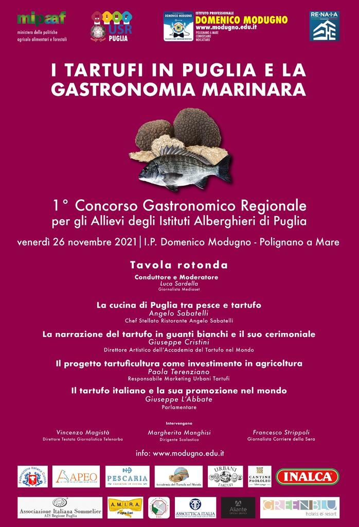 Valorizzare le eccellenze della gastronomia marinara pugliese abbinandole con il tartufo, in contesti originali di ricerca e studio. È questo l’obiettivo del Concorso gastronomico, organizzato dall’Istituto Professionale Domenico Modugno di Polignano e patrocinato dal Ministero delle Politiche agricole, rivolto agli allievi dell’ultimo anno di corso degli alberghieri pugliesi. I cuochi del futuro si sfideranno, domani a partire dalle ore 10:00, nell’esaltare e valorizzare il tartufo, con sapienti abbinamenti volti ad innovare l’offerta gastronomica del territorio, senza tralasciare le peculiarità e l’essenza delle tipicità locali. Nata da un’idea del deputato Giuseppe L’Abbate, già sottosegretario di Stato al Ministero delle Politiche Agricole, e di Giuseppe Cristini, direttore artistico dell’Accademia del Tartufo nel mondo, la manifestazione sarà anche occasione per un confronto sulle potenzialità del tartufo in Puglia, sia dal punto di vista agricolo sia da quello ristorativo. A comporre la “giuria tecnica” saranno lo chef Angelo Sabatelli (Presidente), Giuseppe D’Elia (Presidente Amira Puglia), Vito Sante Cecere (AIS Puglia), Salvatore Turtutto (FIC Puglia) e Paola Terenziano (Direttrice Marketing Urbani Tartufi). Presidente della “giuria di degustazione” sarà, invece, l’On. Giuseppe L’Abbate, coadiuvato da Giuseppe Silipo (Direttore Generale USR Puglia, Vincenzo Magistà (Direttore TgNorba24), Francesco Strippoli (Giornalista Corriere del Mezzogiorno), Luca Sardella (giornalista Mediaset), Marino Gentile (Dir. Generale Green Blu Hotels & Resort) e Giuseppe Achille (vicepresidente nazionale Re.Na.I.A.). Gli Istituti pugliesi che parteciperanno, oltre ai padroni di casa dell’IP Modugno di Polignano, saranno il Majorana di Bari, l’Elsa Morante di Crispiano (TA), il M. Perrone di Castellaneta (TA), il Basile-Caramia-Gigante di Locorotondo-Alberobello (BA), il Perotti di Bari, il Presta Columella di Lecce, il Polo Tecnico del Mediterraneo A. Moro di Santa Cesarea Terme (LE), il Tommaso Fiore di Modugno-Grumo Appula (BA), l’Elena di Savoia Piero Calamandrei di Bari e l’Einaudi di Canosa di Puglia (BT). Numerosi i partner d’eccellenza che hanno sposato l’iniziativa: Urbani Tartufi, Green Blu Hotels & Resort, Assoittica, Pescaria, Apeo, Inalca, Aliante e Cantine Paololeo. (CS)