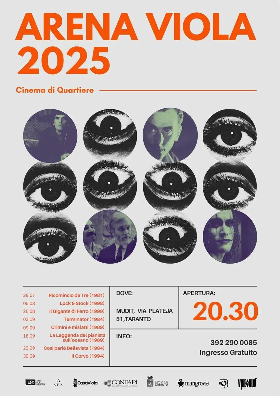 Ogni martedì sera fino al 30 settembre, lo spazio di Casa Viola nel quartiere Tre Carrare–Solito a Taranto ospita la rassegna cinematografica all’aperto Arena Viola, un’iniziativa gratuita dedicata alla promozione della cultura di prossimità.