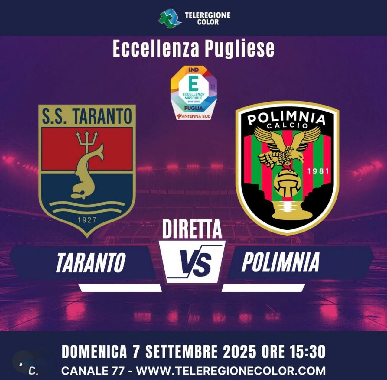 Taranto-Polimnia in diretta su Teleregione Color