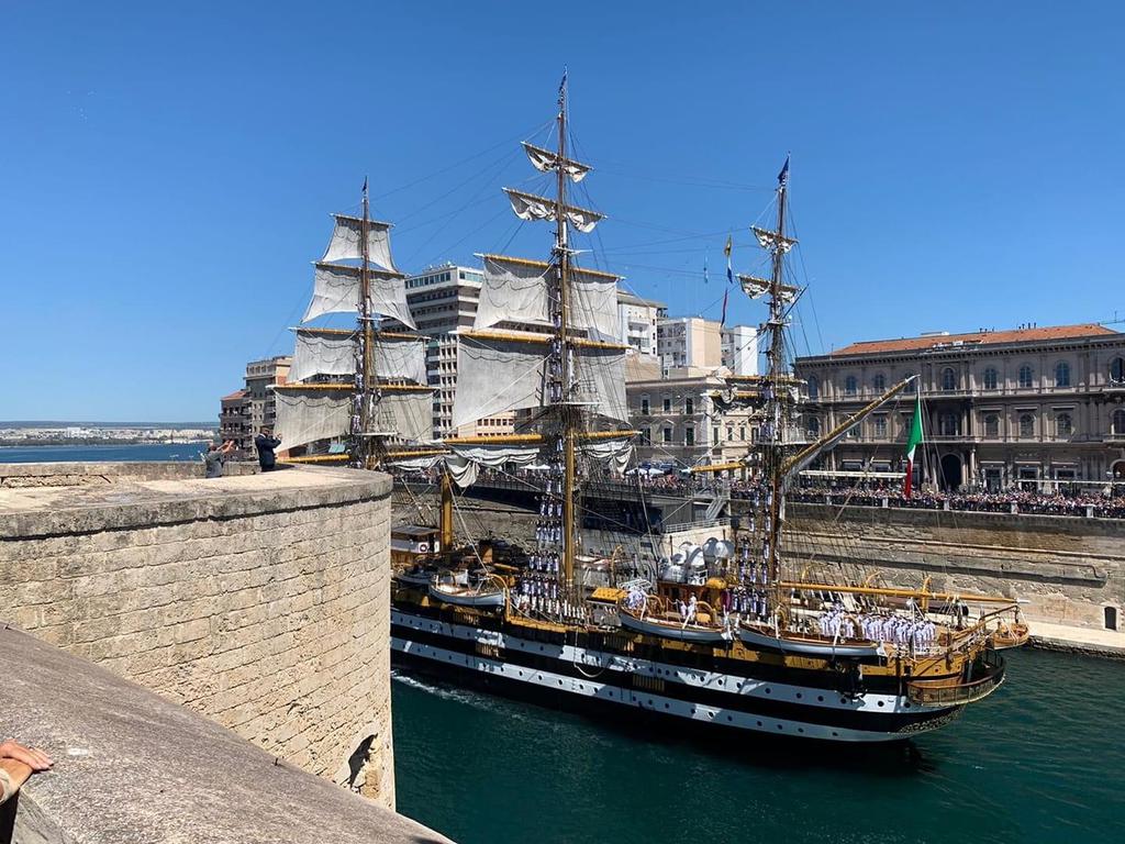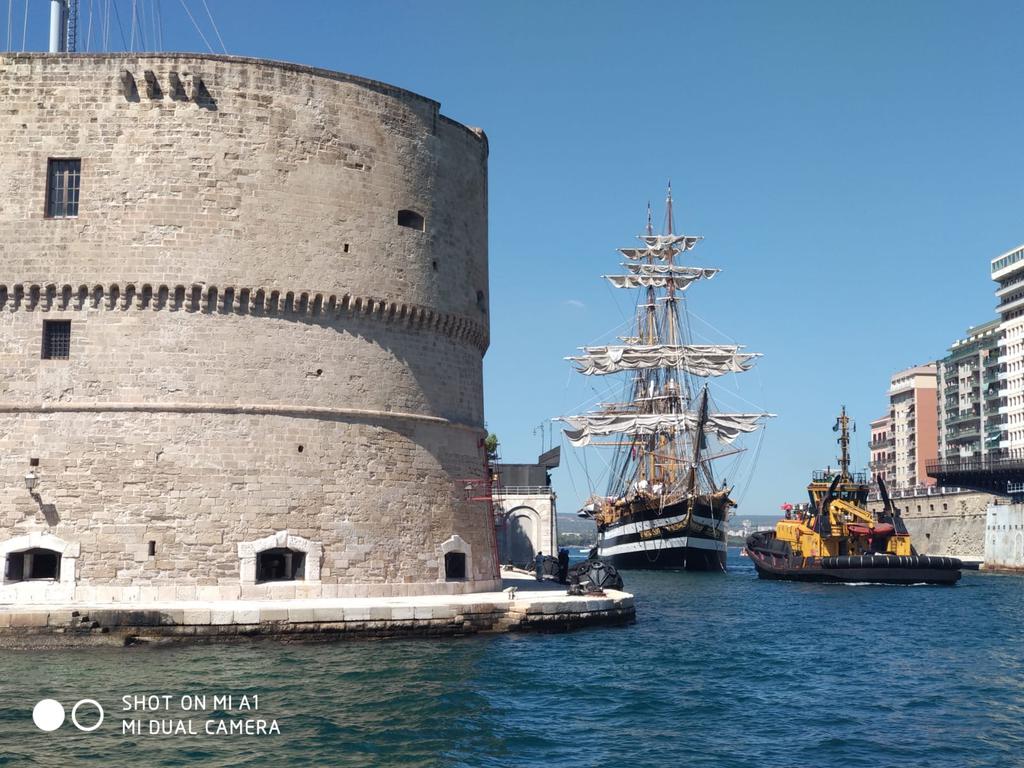 Nel primo pomeriggio di sabato 22 agosto il suggestivo passaggio dell’Amerigo Vespucci attraverso il canale navigabile di Taranto con l’apertura straordinaria del Ponte, sotto gli occhi di tantissima gente. La storica nave scuola della Marina Militare salperà alla volta di La Spezia domenica 23 agosto. Non sarà visitabile (l’idea in principio era quella di abbinare il tour al Castello con la visita alla nave) a causa del Covid.