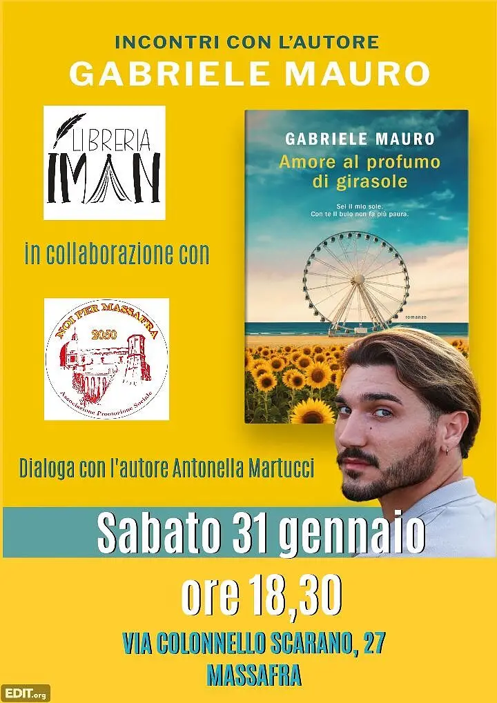 Il 31 gennaio prossimo alle 18:30, ospite del salotto letterario cittadino sarà il giovane scrittore Gabriele Mauro che, in compagnia di Antonella Martucci, presenterà il suo romanzo “Amore al profumo di girasole” edito Garzanti.