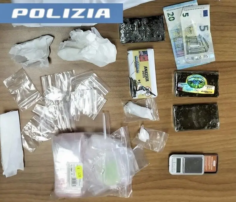 Durante la perquisizione domiciliare, all’interno di un mobile del soggiorno, gli agenti hanno rinvenuto cinque panetti di hashish, per un peso complessivo di circa 250 grammi, insieme al materiale utilizzato per il confezionamento delle dosi destinate alla vendita.