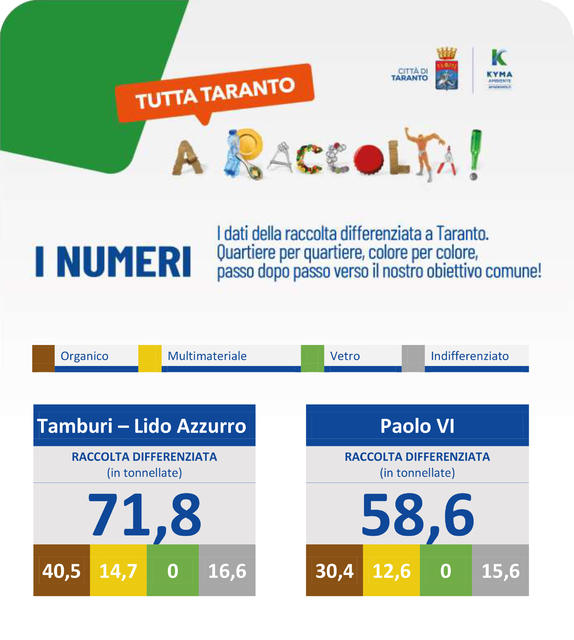 È boom di rifiuti raccolti, a due settimane dall’avvio del nuovo servizio di raccolta differenziata a Tamburi, Lido Azzurro e Paolo VI. Confermate le aspettative dell’esordio, i dati registrati da lunedì a sabato scorsi consegnano l’immagine di quartieri pienamente coinvolti e già performanti. 71,8 tonnellate a Tamburi e Lido Azzurro e 58,6 tonnellate a Paolo VI sono i totali di questo periodo. La forbice è tutta nel numero di residenti, sicuramente maggiore nelle prime due zone, ma vedendo il dettaglio della raccolta si scoprono importanti differenze. Del totale, infatti, a Tamburi e Lido Azzurro ben 40,5 tonnellate sono di organico (più della metà), 14,7 sono di multimateriale e 16,6 di indifferenziato. A Paolo VI, invece, l’organico pesa per 30,4tonnellate (anche qui più della metà), con il multimateriale a 12,6 tonnellate e l’indifferenziato a 15,6 tonnellate. Non risulta il vetro, nei conteggi, perché questa settimana non è stato raccolto (la frequenza di ritiro è quindicinale). Se il trend dovesse essere confermato, nelle sole zone interessate dallo start up del servizio siamo già oltre il 60% di raccolta differenziata. Naturalmente il dato va considerato complessivamente sul territorio urbano, ma una risposta così entusiasta ed efficace da parte dei cittadini è un eccezionale punto di partenza. Queste due settimane, peraltro, sono servite anche a valutare potenzialità e limiti del modello che solo l’esperienza pratica avrebbe potuto mettere in luce. La raccolta dell’organico tre volte a settimana, per esempio, resta una frequenza ampiamente sostenibile, mentre qualche difficoltà è stata avvertita con la raccolta del multimateriale. Questi aspetti sono già all’attenzione dei tecnici, che stanno studiando eventuali contromisure per rendere il servizio ancora più performante. Indubbiamente, per ottenere questo risultato il ruolo dei cittadini resta centrale. Ecco perché si invitano gli utenti a rispettare scrupolosamente le indicazioni di servizio fornite tramite il materiale informativo, con particolare attenzione al rispetto dei giorni di conferimento, che non può essere esercitato (come accade, purtroppo, per il multimateriale) ogni giorno.