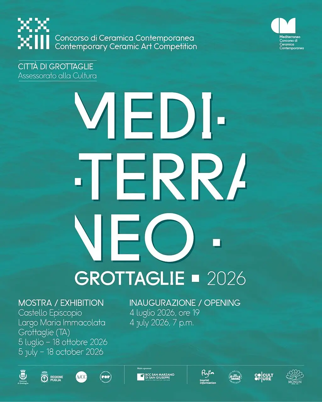 Dal 4 luglio al 18 ottobre 2026 Grottaglie torna al centro della scena artistica internazionale con la XXXIII edizione del Concorso di Ceramica Contemporanea “Mediterraneo”, uno degli appuntamenti più autorevoli dedicati alla sperimentazione ceramica.