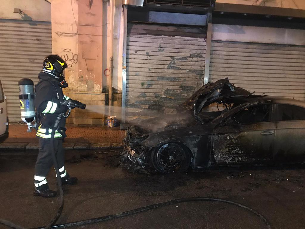 Le fiamme hanno avvolto due auto nel cuore della notte a Taranto. L’episodio si e verificato nel centro cittadino, in Via Temenide all’angolo con Via Oberdan. Da accertare la natura dell’incendio, bisognerà capire se la matrice è dolosa, i Vigili del Fuoco sono prontamente intervenuti per domare le fiamme che avevano avvolto una Mercedes, il fuoco si è poi propagato ad una Fiat 500 parcheggiata nei pressi. Ingenti i danni subiti dalle due auto, non ci sono stati feriti. Notte poco tranquilla per i cittadini residenti nella zona, svegliati nel sonno. Si ringrazia per le foto Francesco Manfuso