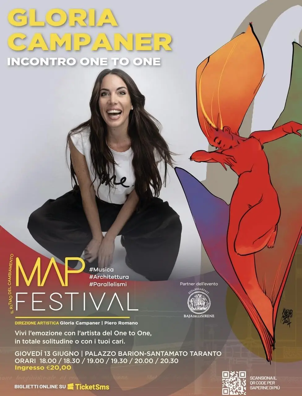Il MAP Festival, con la direzione artistica di Gloria Campaner e Piero Romano, e in programma dallo scorso 5 giugno fino a venerdì 14, è a cura dell’Orchestra della Magna Grecia, del Ministero della Cultura, della Regione Puglia e del Comune di Taranto. Patrocinato dall’Ordine degli Architetti di Taranto e dall’Arcidiocesi, il MAP è realizzato anche grazie al sostegno di Banca BCC di San Marzano di San Giuseppe, Teleperformance, Varvaglione Vini, Ninfole Caffè, Programma sviluppo, Baux cucine, Five Motors.