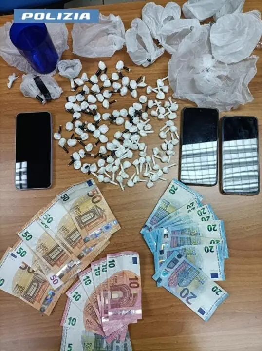 I poliziotti sono intervenuti immediatamente recuperando la busta contenente oltre cento dosi di cocaina per circa 90 grammi. Successivamente, durante la perquisizione, sono stati trovati quasi 800 euro in contanti, banconote di piccolo taglio, e due cellulari presumibilmente utilizzati per lo spaccio. Dall'analisi dei telefoni è emerso che i due usavano frasi in codice come "una birra grande" o "una birra piccola" per indicare la quantità di cocaina richiesta dai loro "clienti". Trasferiti gli atti all'autorità giudiziaria competente, i due giovani sono stati arrestati e posti ai domiciliari.