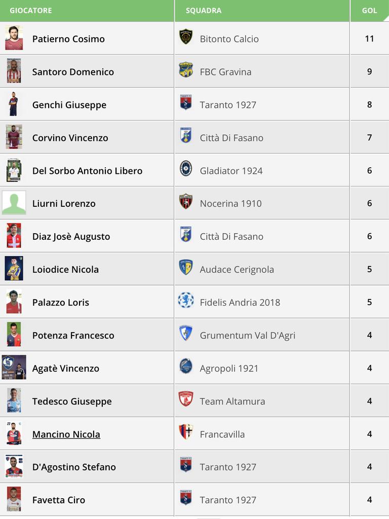 La classifica cannonieri dopo le gare della 12a Giornata, in attesa della prosecuzione di Bitonto-Grumentum