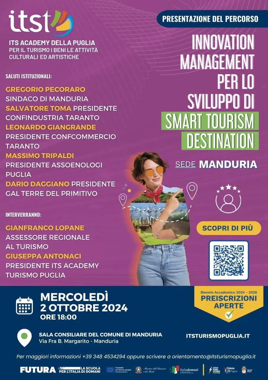 L’ITS, riformato con la legge del 2022, è un’accademia di alta specializzazione tecnologica post-diploma che gioca un ruolo chiave nel Piano Nazionale di Ripresa e Resilienza (PNRR), offrendo ai giovani opportunità di crescita professionale e personale. I percorsi formativi sono gratuiti e prevedono stage anche all’estero, contribuendo a creare una generazione di professionisti capaci di innovare il settore turistico pugliese.