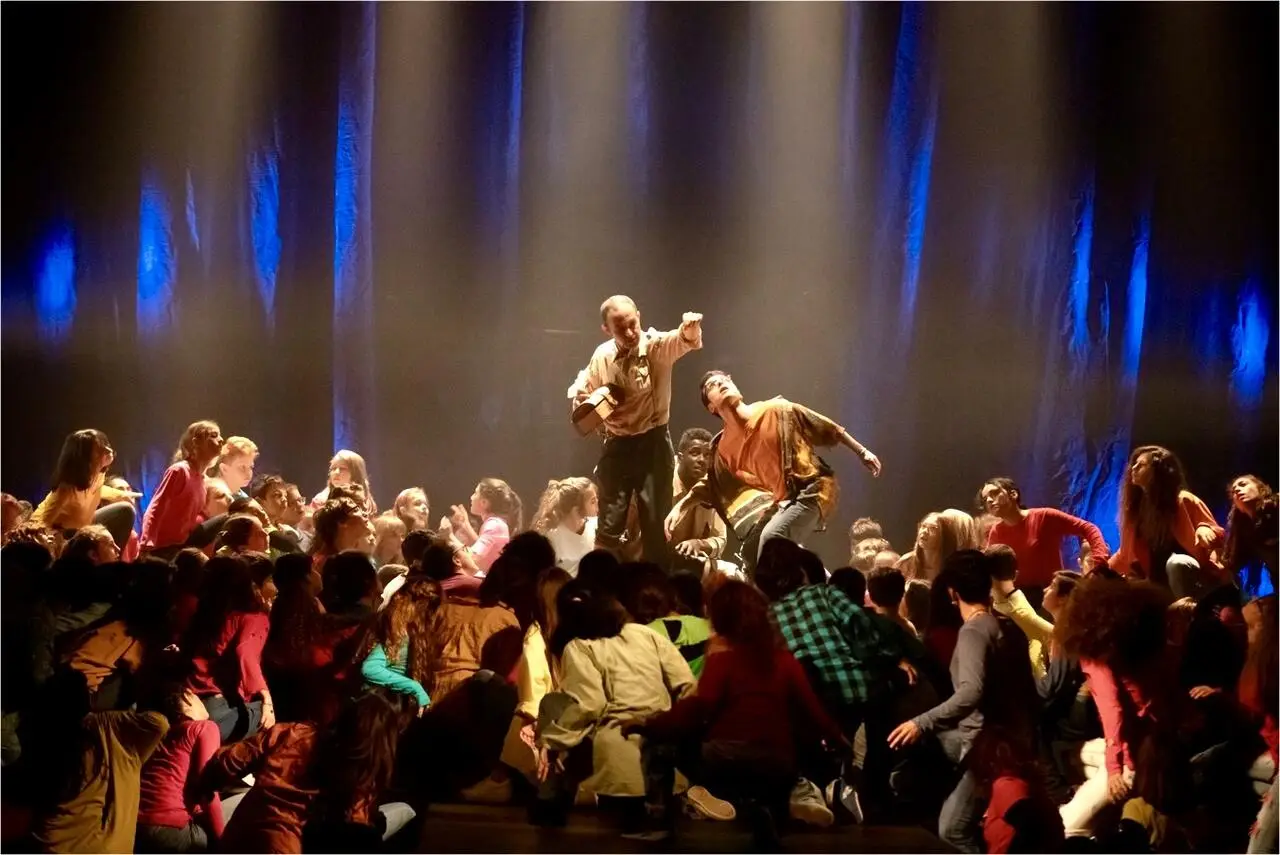 “L’urgenza vitale di 100 bambini e adolescenti è più forte di qualsiasi logica di mercato,” spiegano Stefania Marrone e Cosimo Severo, i registi dello spettacolo. Ogni messa in scena è irripetibile, grazie al coinvolgimento di ragazzi diversi in ogni città, che danno corpo al coro degli uccelli e a quello dei nati liberi dopo un’esperienza immersiva di una settimana.