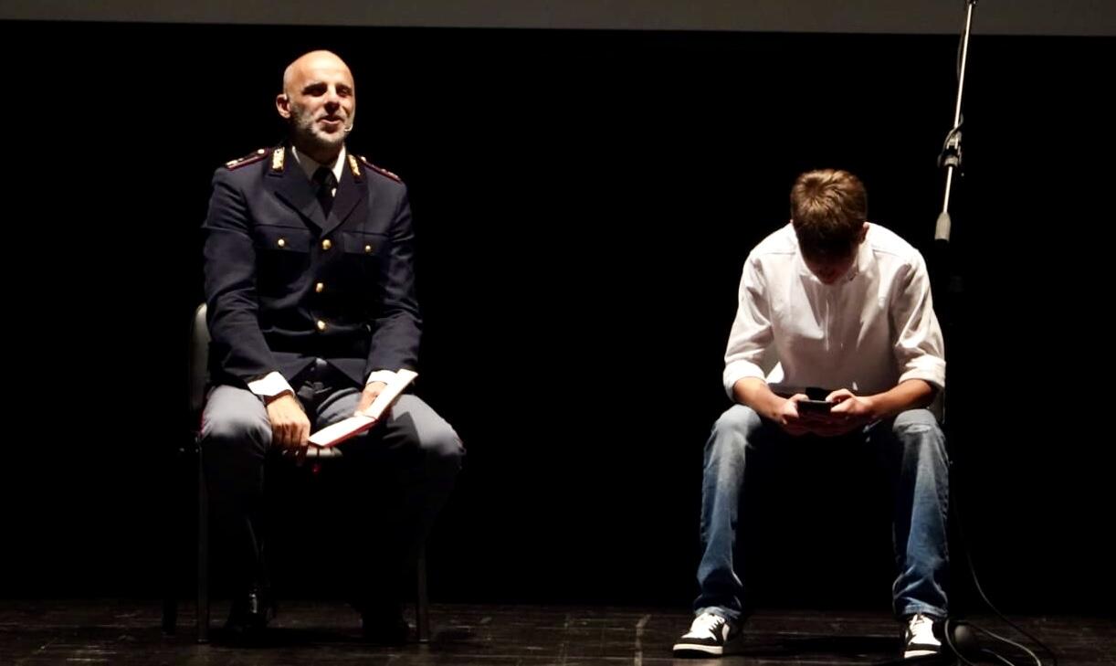 Il Sovrintendente Tecnico della Polizia di Stato Domenico Geracitano, in servizio presso la Questura di Brescia, che ha ideato e scritto la conferenza teatralizzata andata in scena al Teatro Fusco dal titolo “ordin@mente”, arricchito dalla proiezione di un videoclip realizzato in collaborazione con Francesco Renga e Nek dal titolo “Oltre l’amore”.