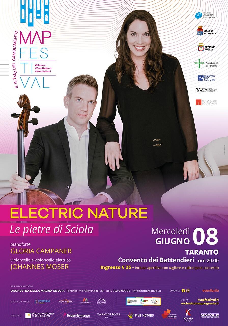 «Sarà un’esperienza acustica straordinaria attraverso le sonorità della natura: il canto delle pietre di Pinuccio Sciola, le sfumature contemporanee che arrivano dall’elettronica e dal violoncello elettrico, per poi finire nel repertorio classico e quindi al pianoforte: sono felice e onorata di condividere questo viaggio con un grande violoncellista come Johannes Moser, eccellente solista e strumentista da anni impegnato nella diffusione della nuova musica contemporanea». Così Gloria Campaner, grande pianista, alla vigilia di “Electric Nature – Le pietre di Sciola”, uno degli appuntamenti più attesi del MAP Festival.