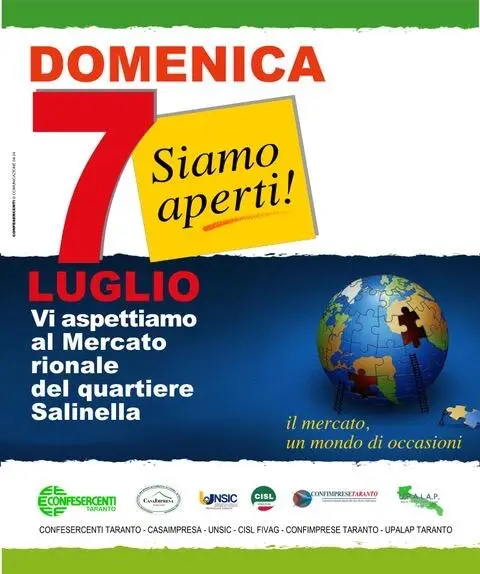 L'appuntamento è fissato per domenica 7 luglio al Mercato della Salinella, dove oltre 150 operatori saranno al servizio della comunità tarantina.