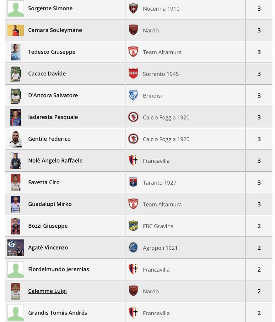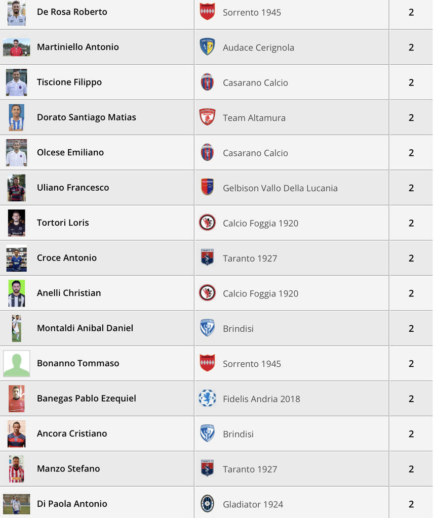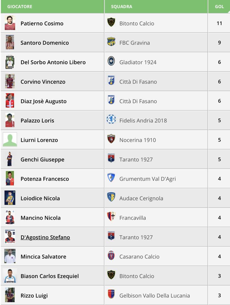Serie D/H: Marcatori, Patierno vola in doppia cifra