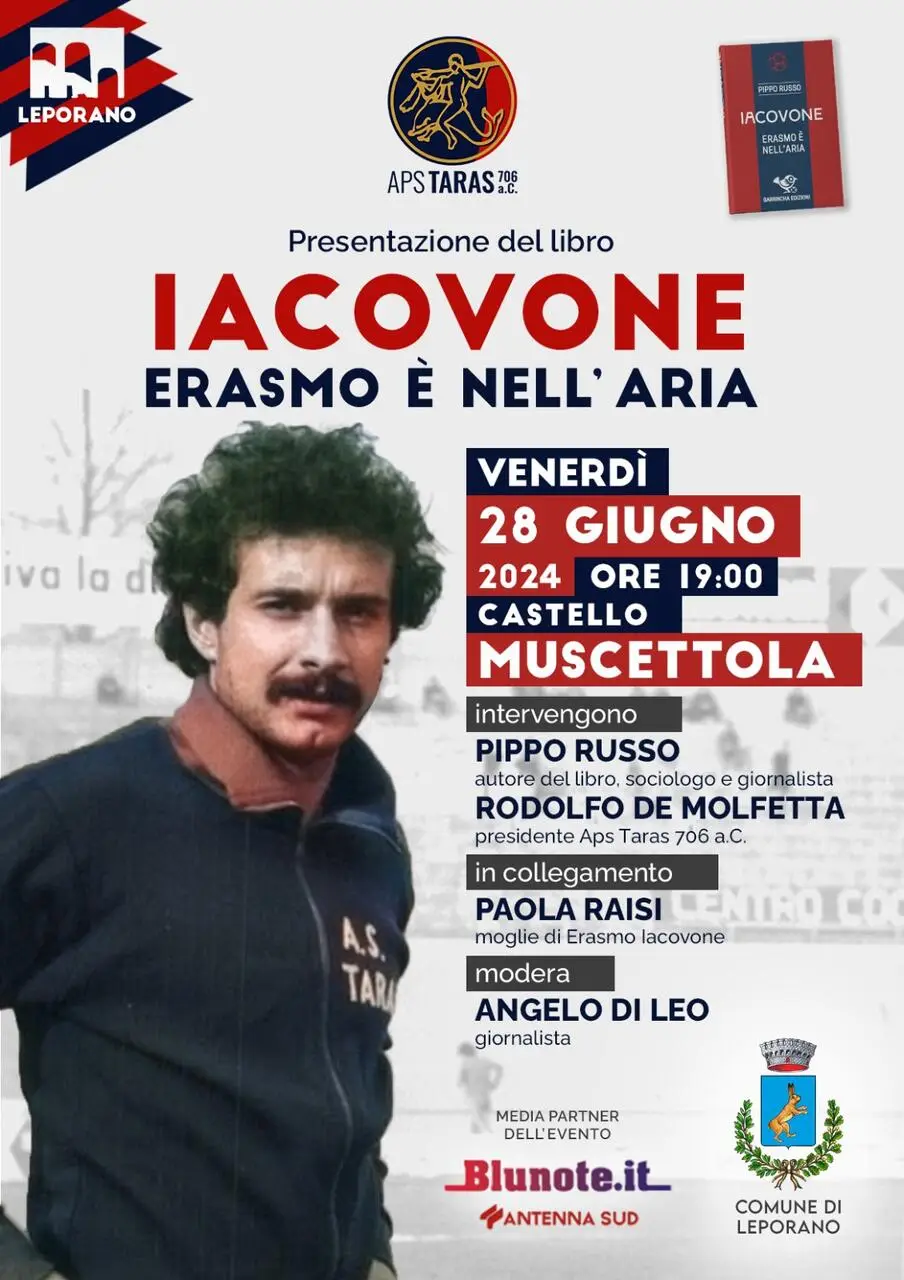 “Iacovone. Erasmo è nell’aria” approda in uno dei Borghi più belli d’Italia. Il quinto appuntamento con la presentazione del libro, edito da Garrincha e dedicato all'indimenticabile bomber di Capracotta, si terrà venerdì 28 giugno alle ore 19:00 presso l’affascinante cornice del Castello Muscettola di Leporano.