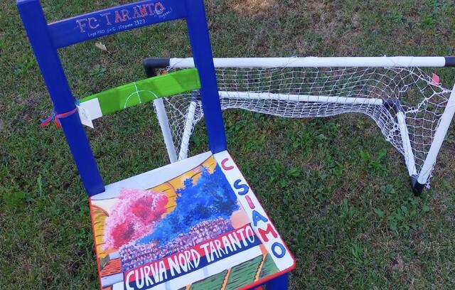 (di Cosimo De Bartolomeo) Marco Maraglino è un giovane ragazzo tifoso del Taranto che durante il periodo del covid per sopravvivere ha dovuto così reinventarsi come fanno tutti i giovani in difficoltà senza lavoro. Nasce così l' idea della "seggiola". Un tipo di auto imprenditorialità che consiste nel lavorare manualmente delle sedie personalizzate per le attività commerciali. Quella che sembrava una necessità in situazione d' emergenza è diventato un vero e proprio lavoro tanto da realizzarne ben 99. La numero 100 appena realizzata è dedicata alla splendida Curva Nord e Marco ha così pensato di metterla all'asta per far sì che il ricavato vada devoluto in beneficenza.