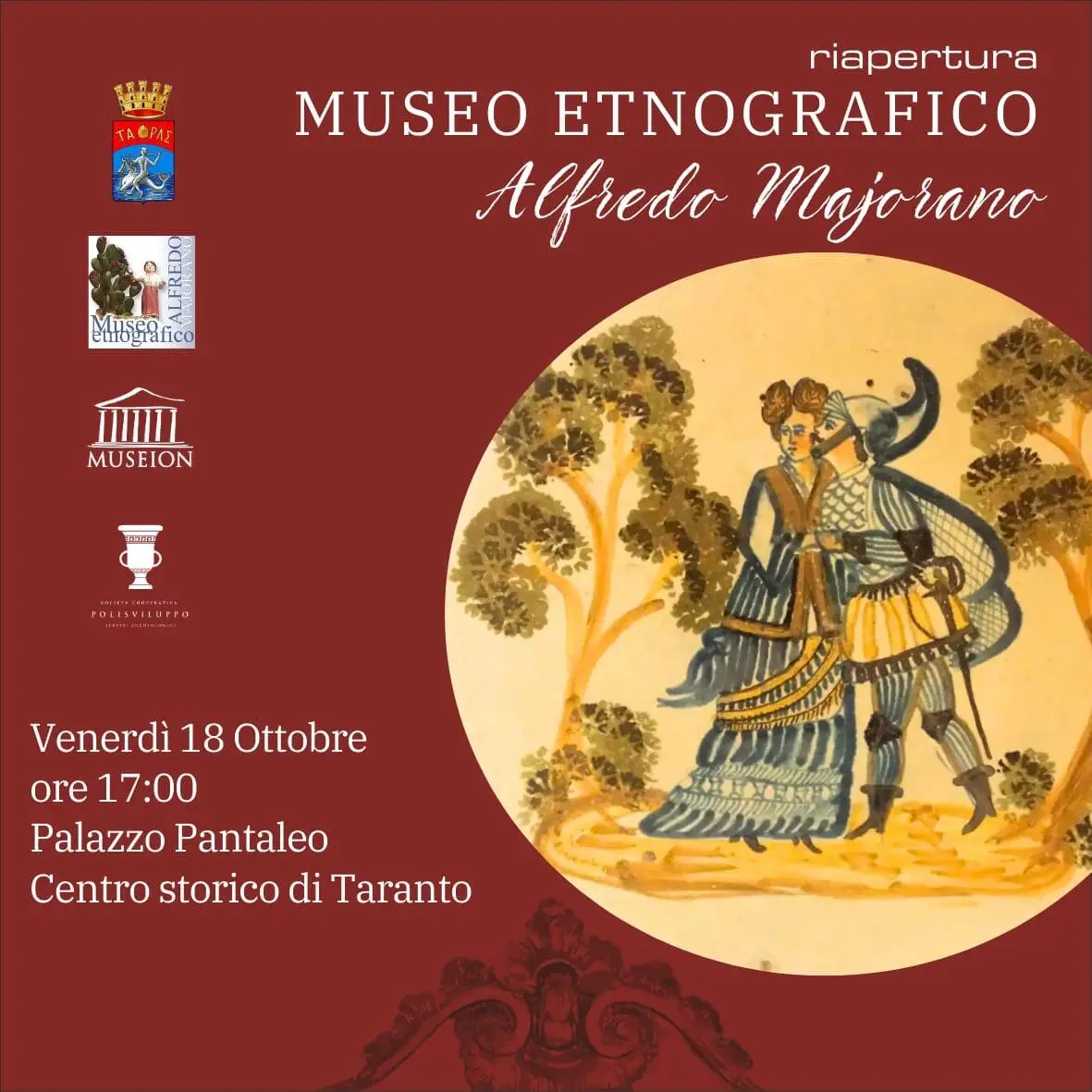 La ripresa delle mostre e delle attività del “Majorano”, la cui gestione è stata affidata con un accordo di partenariato alle società cooperative “Museion” e “Polisviluppo”, rappresenta l’ennesimo obiettivo raggiunto dall’Amministrazione guidata dal sindaco Rinaldo Melucci nell’ambito del più vasto processo di rigenerazione culturale avviato con il piano “Ecosistema Taranto”. Considerato strategico sia per la promozione del territorio sia per l'educazione permanente dei cittadini in materia di beni culturali e alla valorizzazione turistica del comprensorio tarantino, il Museo è pronto ad accogliere nuovamente i visitatori per mostrare il proprio inestimabile patrimonio demologico, antropologico ed etnografico collezionato dall’insegne studioso tarantino a cui è dedicato.
