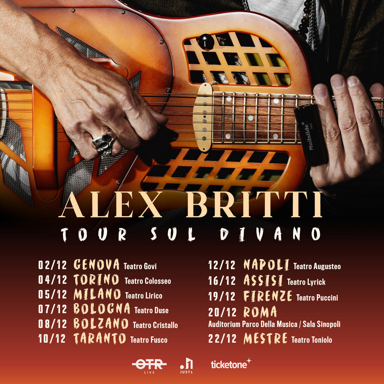 La rassegna continua il 10 dicembre con il “Tour sul divano” di Alex Britti, una serata musicale dal clima intimo durante la quale il celebre cantautore, seduto comodamente su un divano con alcune delle sue inseparabili chitarre, racconterà in tono confidenziale molti degli eventi che hanno segnato la sua carriera, ricca di successi e soddisfazioni, partendo “da quando tutto è iniziato ad oggi o se preferite da oggi a quando tutto è iniziato”.