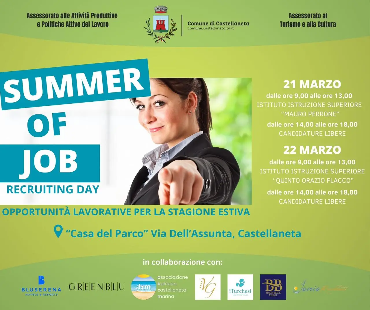Con delibera di giunta 36/2024 l’Amministrazione Comunale di Castellaneta promuove e supporta il progetto “Summer of Job” ideato con gli Assessorati alle Politiche Attive del Lavoro (Francesco Rotolo) e del Turismo (Anna Molfetta).