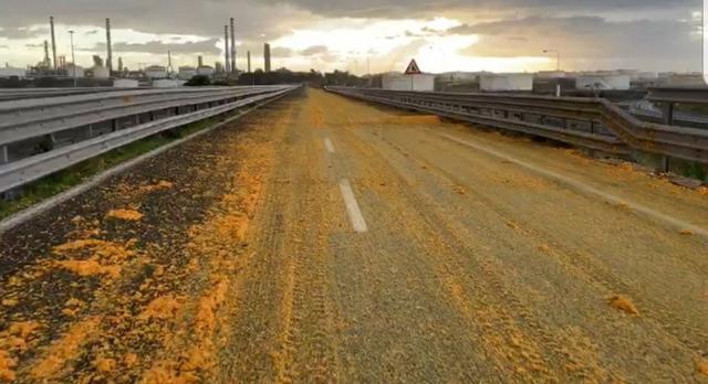 Un carico di arance è finito sulla carreggiata della strada statale 106 Jonica, alle porte di Taranto. L’episodio si è verificato nella notte: le casse di arance, posizionate a bordo di un camion che trasportava agrumi, si sono sganciate invadendo la strada. Non ci sono stati feriti, non sono stati coinvolti altri mezzi. Sul posto la Polizia Stradale e i Carabinieri di Taranto, necessario l’intervento dei mezzi dell’Anas per ripulire l’asfalto e ripristinare la circolazione rimasta interrotta per circa due ore.