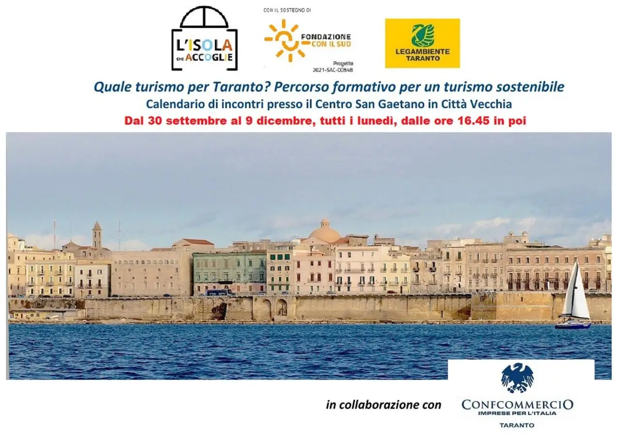 “Quale turismo per Taranto?” è il nome del prossimo ciclo di incontri organizzato presso il Centro San Gaetano, in Città Vecchia, da Legambiente Taranto con la collaborazione di Confcommercio Taranto, nell'ambito del progetto "L'Isola che accoglie", un progetto sostenuto dalla Fondazione CON IL SUD.