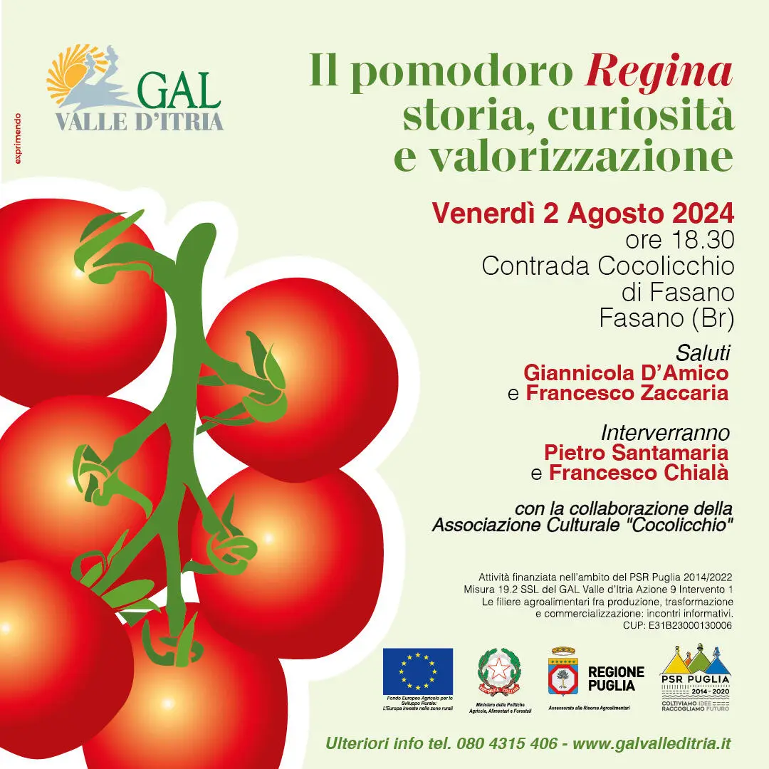Ricco di antiossidanti biologici capaci di esercitare un effetto protettivo nei confronti degli stress ossidativi nel corpo umano, il Pomodoro Regina cresce nei terreni salmastri del Parco delle Dune Costiere, tra Torre Canne ed Egnazia, lungo l’antica via Traiana. Si tratta di una varietà di pomodoro che prende il nome dalla forma del suo peduncolo, che crescendo assume la forma di una coroncina.