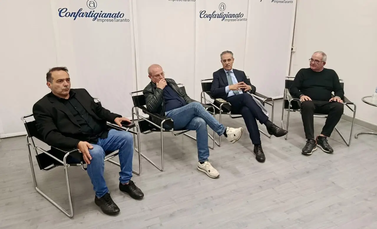 All’iniziativa hanno preso parte i dirigenti di Confartigianato, i rappresentanti degli Ordini professionali provinciali (Francesco Vizzarro per i commercialisti, Luigi De Filippis per gli ingegneri, Fabrizio Corona per gli architetti e Francesco Nigro per i geometri), oltre a Dario Iaia, responsabile unico del Contratto Istituzionale di Sviluppo (CIS) di Taranto.