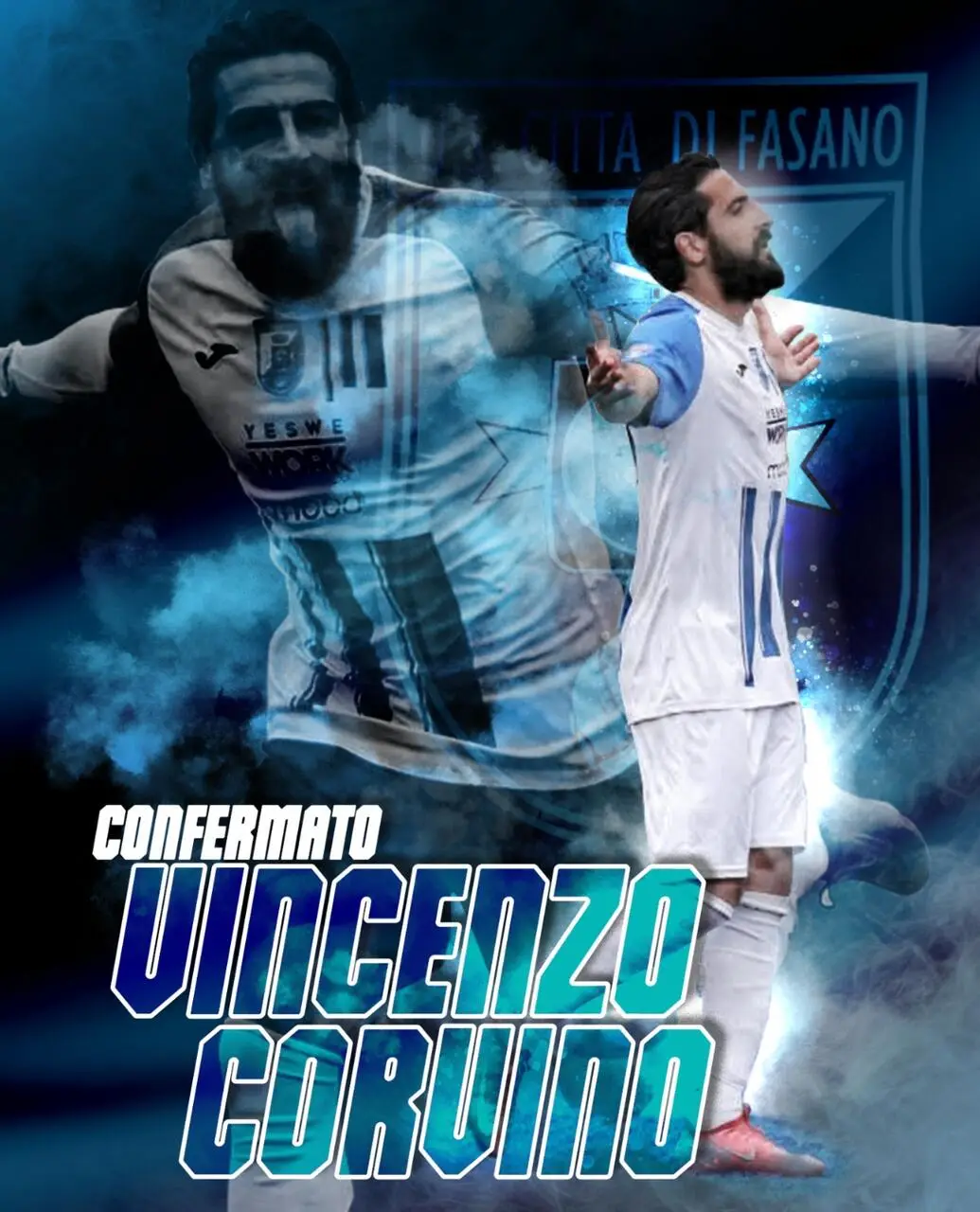 Il Fasano riparte da uno dei suoi simboli ufficializzando la conferma dell’attaccante Vincenzo Corvino, che vestirà la maglia biancazzurra per la settima stagione consecutiva. Un legame ormai storico, testimoniato da numeri importanti: oltre 180 presenze, 84 reti e una quarantina di assist, che ne fanno un autentico punto di riferimento per squadra, tifosi e ambiente. Il classe ’91, dal profilo tecnico e carismatico, sarà il nuovo capitano del Fasano a partire dal prossimo campionato. Una scelta nel segno della continuità e dell’identità, che rafforza ulteriormente il ruolo centrale dell’attaccante all’interno del progetto biancazzurro.
