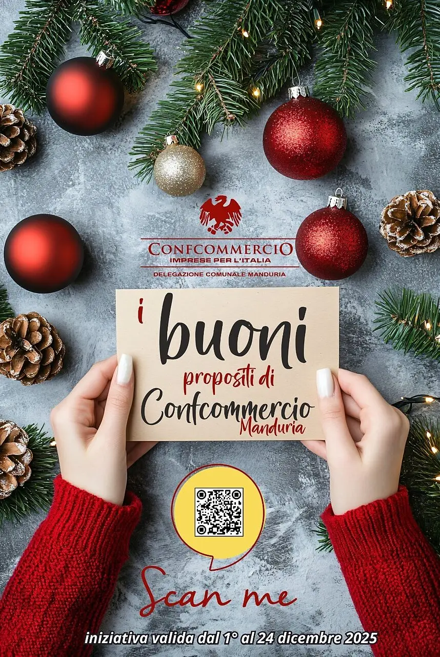 La Delegazione di Confcommercio Manduria lancia una nuova iniziativa per sostenere il commercio di vicinato durante il periodo natalizio. Si tratta dei Buoni Propositi di Confcommercio, un sistema di buoni sconto che verrà attivato dall’1 al 24 dicembre 2025 all’interno della rete delle attività aderenti.