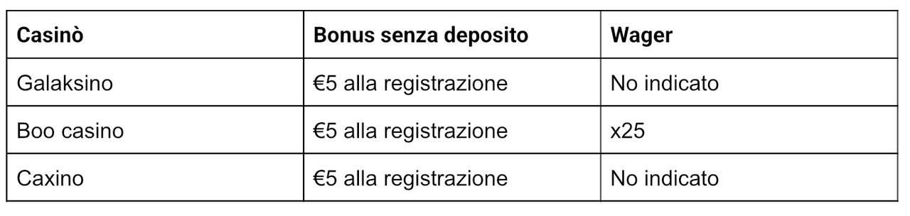 Elenco dei casinò con bonus senza deposito di 5 euro
