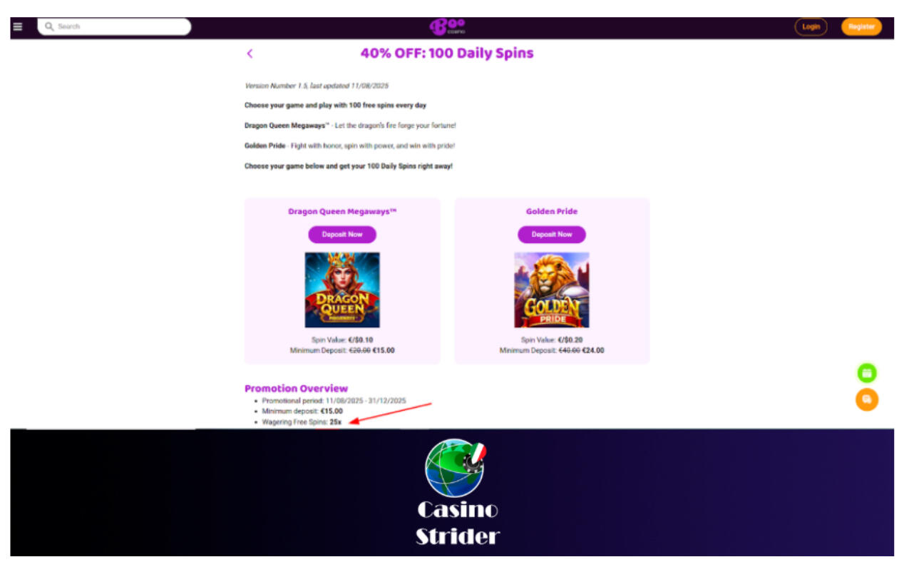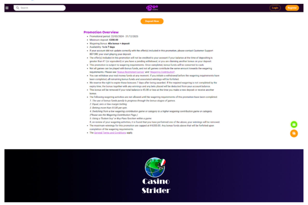 Un prelievo riuscito di 50–100€ da questo bonus è un buon segnale di onestà e affidabilità del brand. E quindi, secondo la nostra esperienza diretta, il no-deposit è un filtro utile per scegliere la piattaforma, dopo il quale puoi decidere se passare al deposito e a promo più corpose.