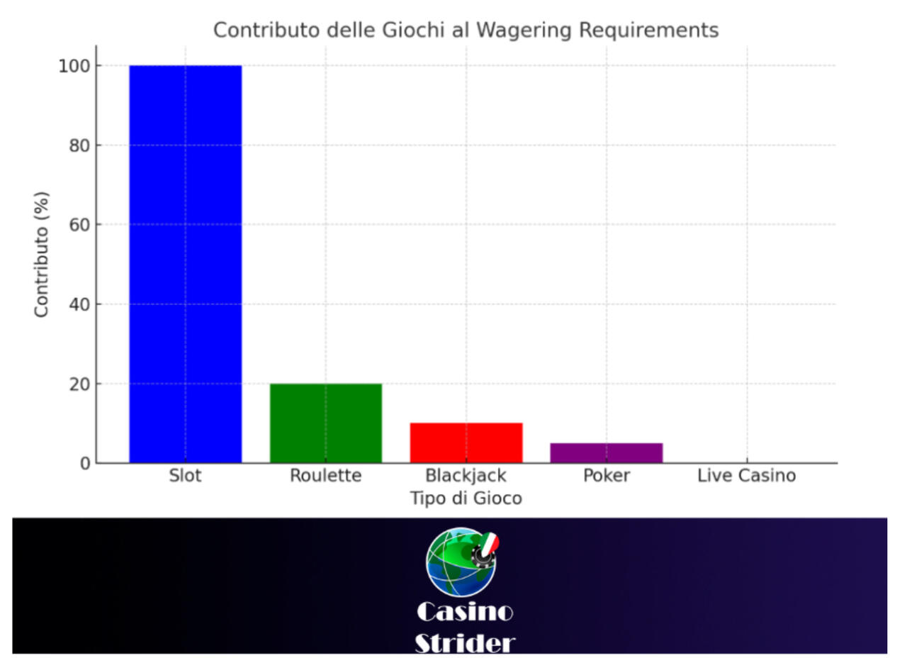 I giochi contribuiscono in modo diverso al requisito: le slot contano spesso al 100%, mentre i giochi da tavolo possono pesare solo per il 5–20%. I giochi Live Casino sono spesso esclusi dal rigioco.