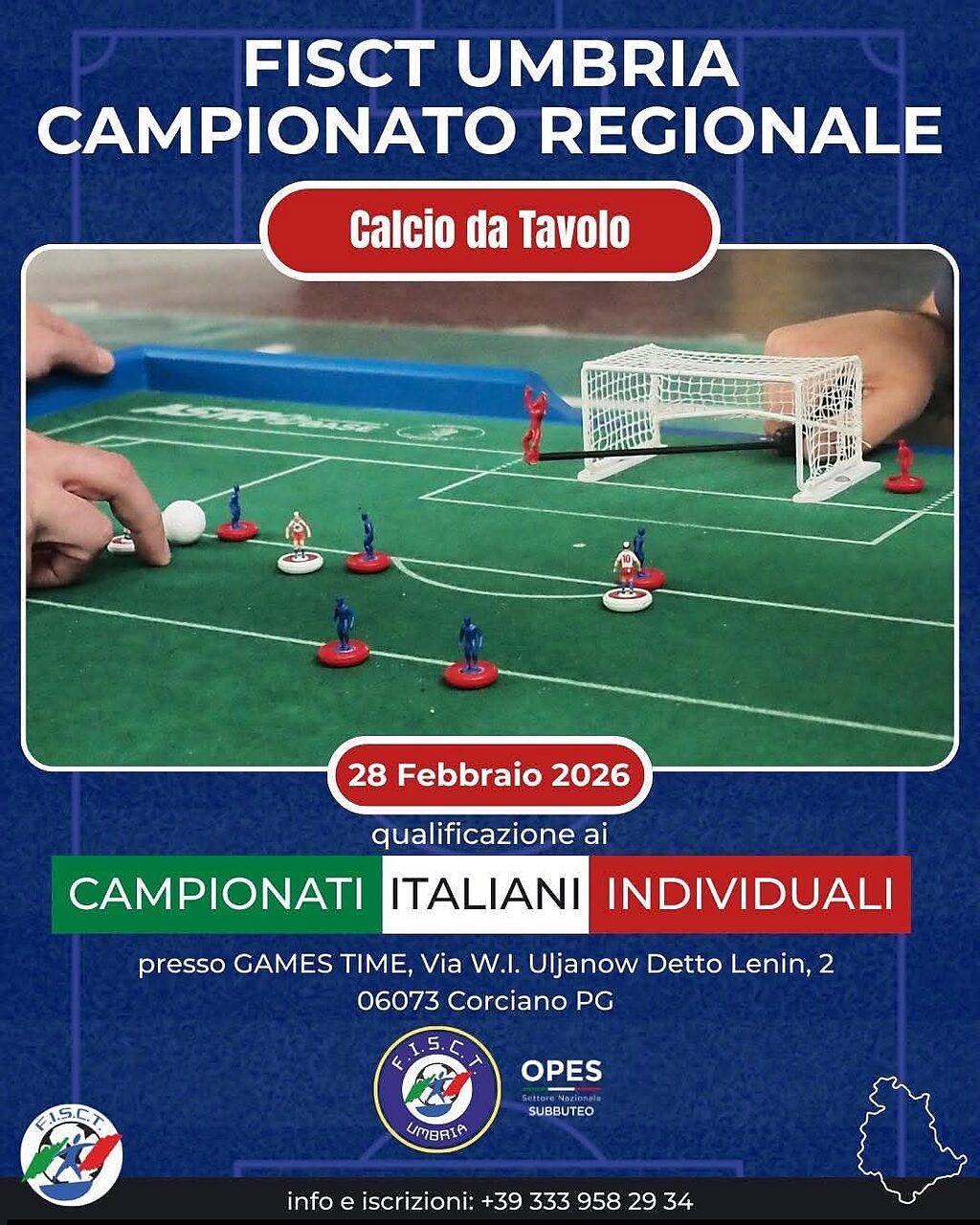 Dopo l’esperienza alla Coppa Italia di calcio tavolo disputata ad Anagni, per Marco Perotti, tesserato Fisct con il club del Taranto, è in arrivo un nuovo appuntamento agonistico. Il giocatore ternano sarà impegnato sabato 28 febbraio 2026 a Corciano, in provincia di Perugia, nel Campionato Regionale Umbro di calcio tavolo categoria Open.