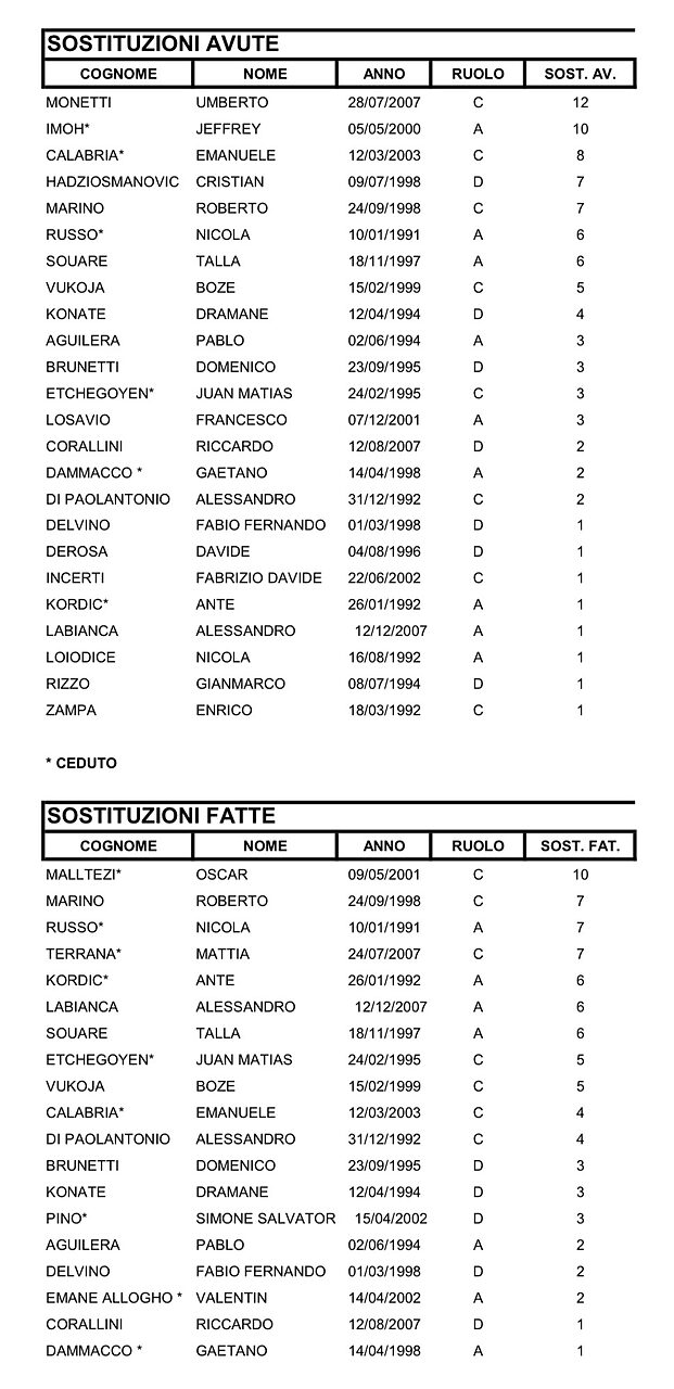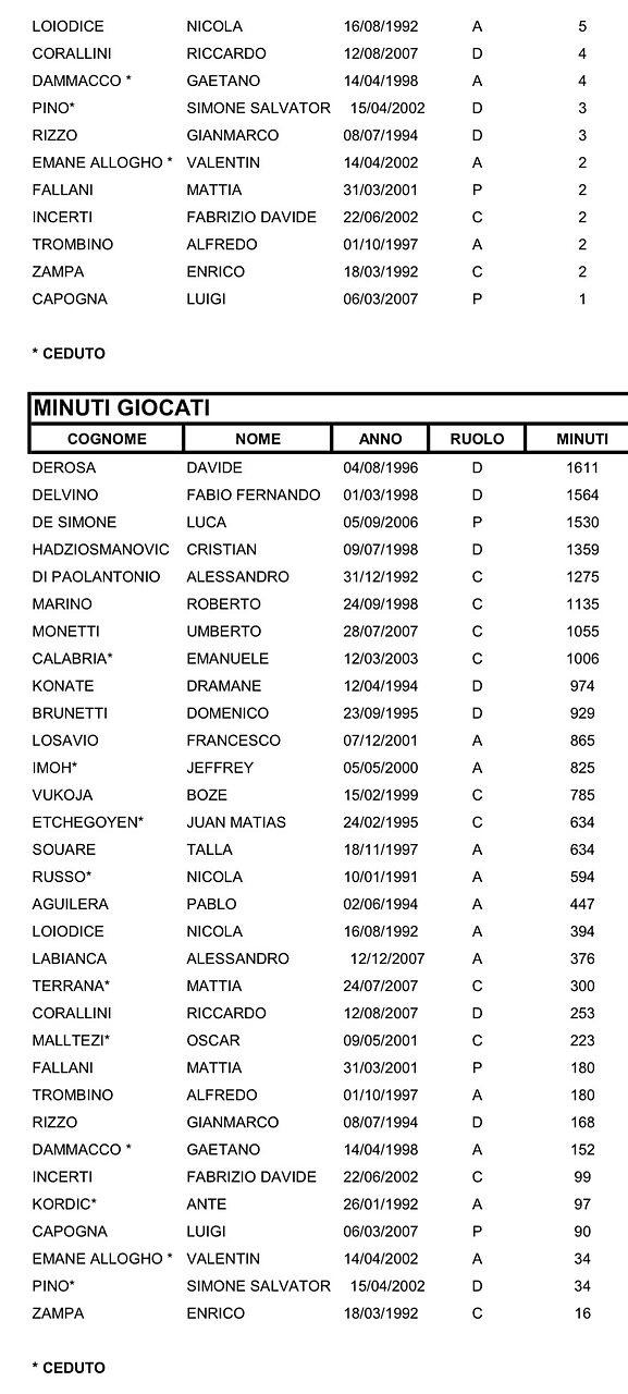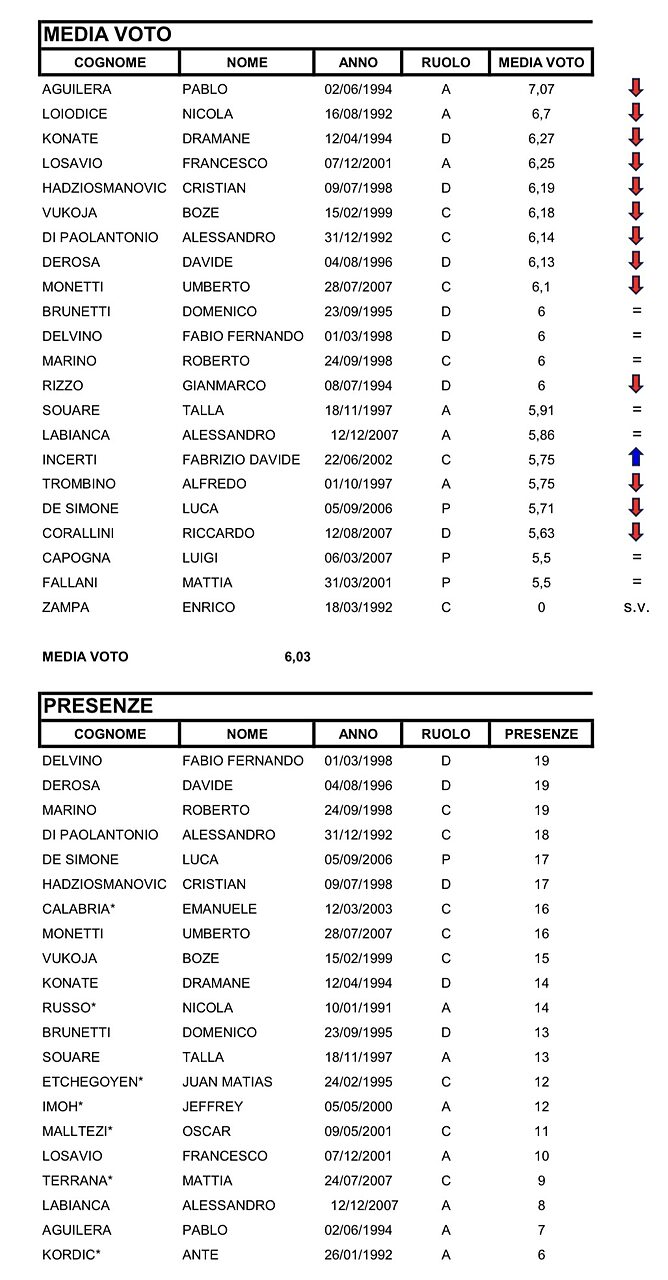 Taranto, statistiche e medie voto dopo la 20a Giornata