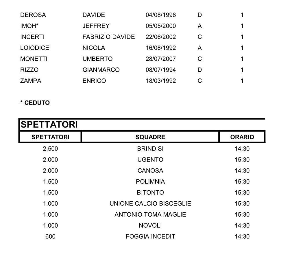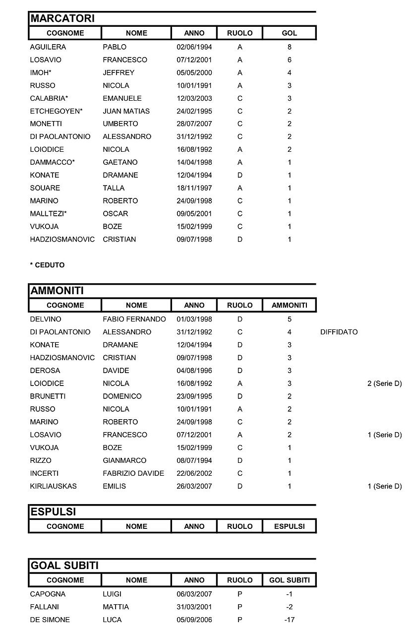 (Di Luca Pierri) Le medie voto si calcolano sulla base delle valutazioni della redazione sportiva di Blunote. Ecco la situazione aggiornata dopo la sconfitta con l’UC Bisceglie, nella gara giocata allo stadio Ventura e valida per la 20a Giornata del campionato di Eccellenza pugliese.