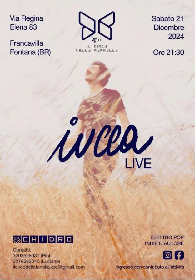 Sabato 21 dicembre 2024, il palco de “Il Circo della Farfalla APS” accoglierà un evento imperdibile della stagione 2024/2025: protagonista della serata sarà Iucca, il progetto musicale di Dino Semeraro, compositore e musicista noto nella scena indie-rock italiana.