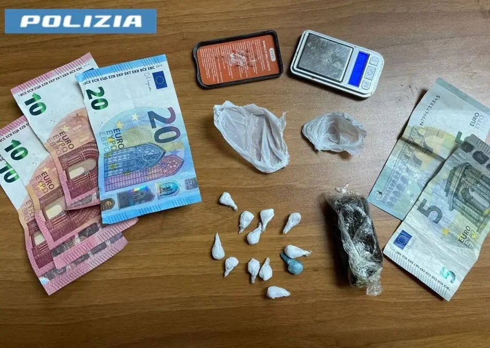 Un agente della Squadra Mobile, confondendosi tra i clienti, è riuscito a entrare nell'appartamento permettendo così ai colleghi di irrompere immediatamente. Durante la perquisizione, i poliziotti hanno trovato un contenitore in pelle con 12 dosi di cocaina, 36 grammi di hashish, materiali per il confezionamento della droga e 60 euro in contanti, considerati provento dell'attività di spaccio.