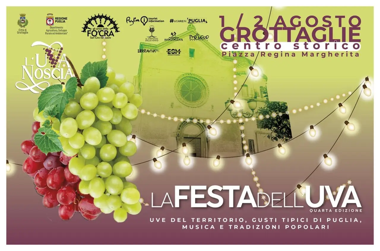 Torna l’appuntamento con “L’Uva Noscia”, la manifestazione che celebra uno dei simboli più autentici della tradizione agricola grottagliese: l’uva da tavola. Venerdì 1 e sabato 2 agosto 2025, le strade e le piazze del centro storico di Grottaglie si trasformeranno in un percorso esperienziale animato da musica, gastronomia, artigianato e cultura popolare.