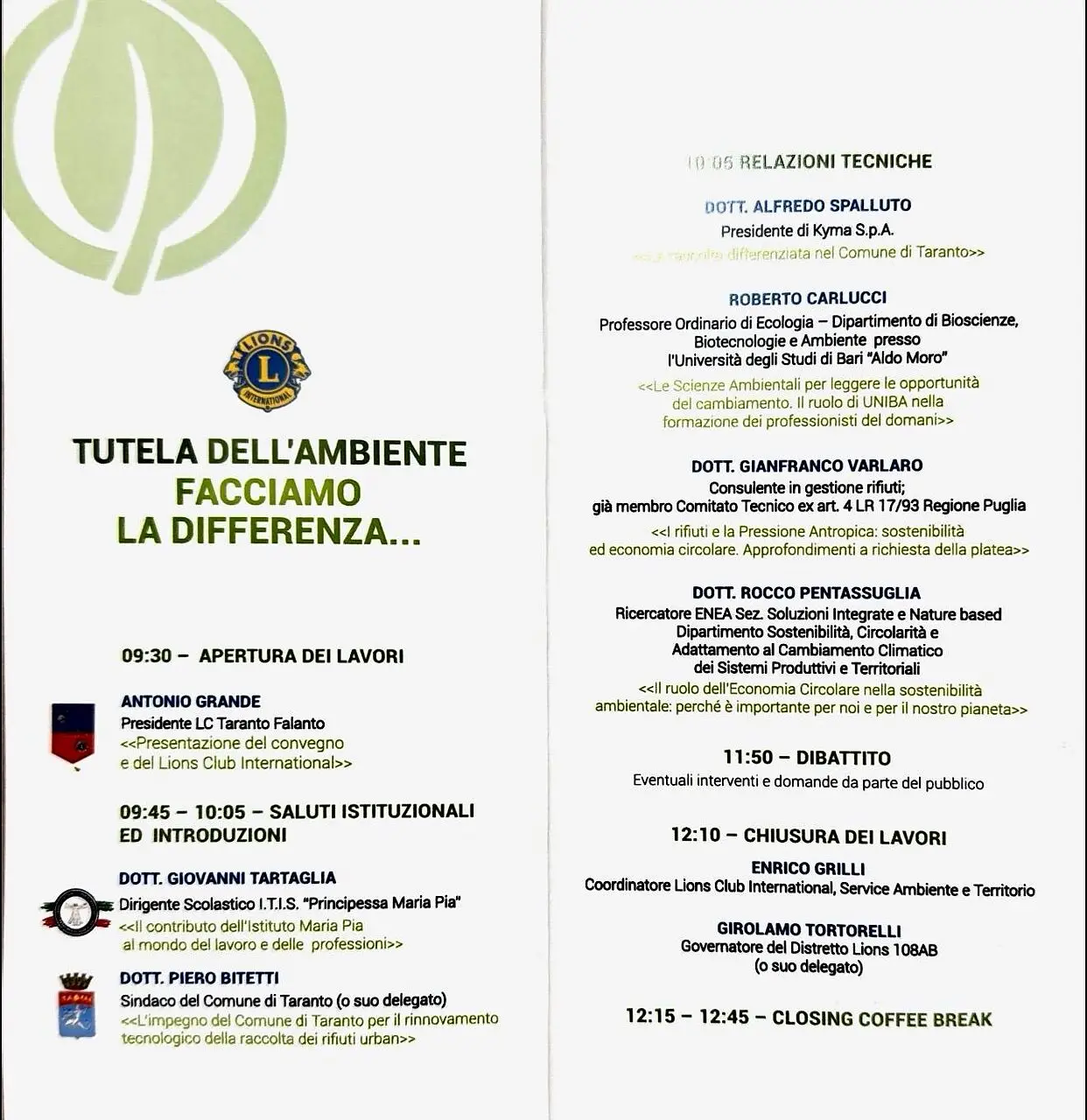 Si terrà presso l’Istituto Tecnico “Principessa Maria Pia” di Taranto il convegno dal titolo “Tutela dell’ambiente: facciamo la differenza”, promosso dal Lions Club Taranto Falanto in collaborazione con l’Istituto.