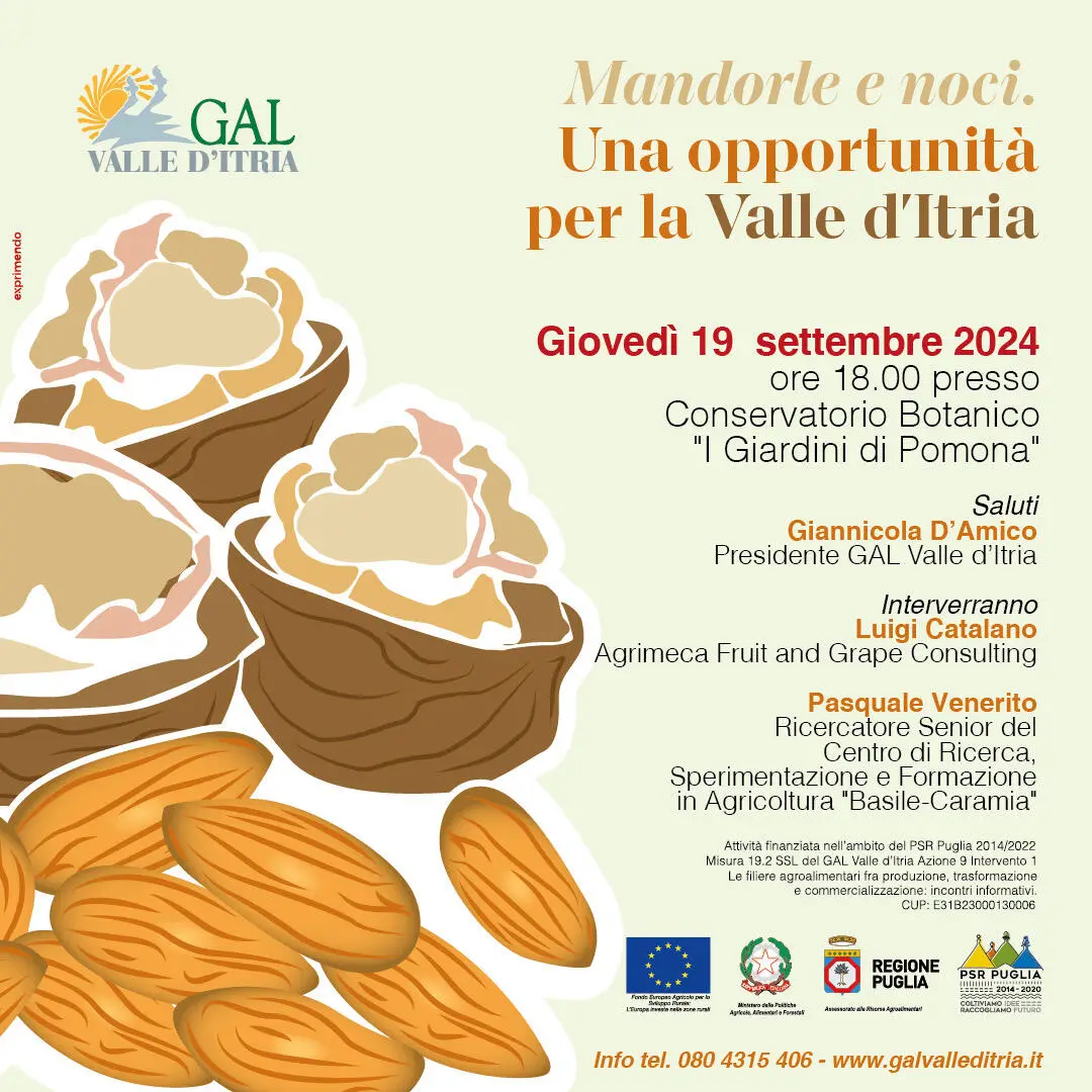 “Il mandorlo è una pianta robusta e rustica, non ha bisogno di concimi chimici o trattamenti fitosanitari e cresce bene anche su terreni poveri, poco profondi e aridi. Per questo può rappresentare una risorsa preziosa per la Valle d’Itria- ha dichiarato il presidente del GAL Valle d’Itria, Giannicola D’Amico- ma è importante comprenderne potenzialità e scenari anche alla luce dei cambiamenti climatici in atto”.