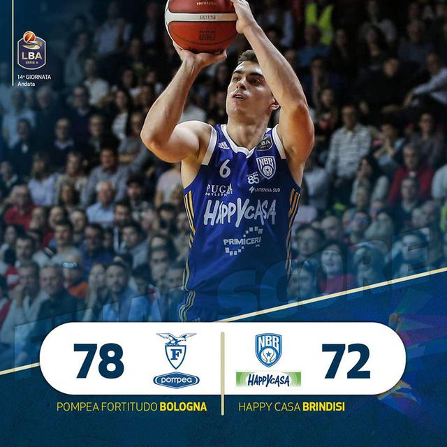 L'avvio di Brindisi non è dei migliori, mentre la Effe parte con le maglie strette in difesa. Sims parte a martello e Robertson segna il gioco da 3 che costringe Vitucci al primo time out: 14-5. Entra Sutton che cerca subito di entrare nel vivo del gioco, ma chi porta i punti pesanti è Stone. Aradori fissa la fine del quarto sul 20-14. Nel secondo periodo la Fortitudo mantiene alta l'intensità difensiva e solo Brown trova qualche punto. Sims è una furia e Cinciarini segna la tripla del massimo vantaggio Bologna: 34-22. Serve un altro time oout a Brindisi. Cresce timidamente la difesa dell'Happy Casa, che continua però a far fatica in attacco: Stone sbaglia tanto ma fa rimedia a ogni cosa: 10 punti nel solo secondo quarto! Gaspardo riavvicina Brindisi col sottomano del -6 e Robertson fissa il punteggio di metà tempo sul 40-32. Sims è già in doppia doppia con 14 più 10 rimbalzi, mentre per Brindisi ben 16 Stone ma mancano come il pane i punti di Banks. Ci si aspetterebbe una reazione immediata di brindisi nel terzo quarto, e invece è ancora la Effe a partire meglio: Leunen e Fantinelli la riportano a +12(44-32). Bologna tocca anche il +14 (53-39) ma scatta il momento di Adrian Banks: 15 punti nel solo terzo quarto. Nel finale di terzo periodo, nonostante i tanti errori, il punteggio è 61-54. Nell'ultimo periodo su Brindisi inizia a pesare la stanchezza. Fantinelli e Cinciarini sono i mattatori di Bologna che si riporta di nuovo a +14. Dopo il time out Brindisi tenta il tutto per tutto: Stone e soprattutto Banks ci provano in ogni modo, ma il massimo che ottengono è toccare il -4 (71-67). Nelle ultime azioni manca lucidità: Sutton, sufficiente ma rivedibile nel suo esordio) sbaglia l'appoggio del -3 e sui liberi di Aradori scorrono di fatto i titoli di coda. Finisce 78-72. Brindisi incassa il quarto ko consecutivo in campionato, e paga soprattutto le rotazioni estremamente ridotte (Iannuzzi, Campogrande e Ikangi 7 minuti in 3). Prossimo impegno il giorno di santo Stefano il 26 dicembre contro reggio Emilia, col pubblico chiamato ad aiutare i suoi a riportare i 2 punti. (Di Simone Silvestro per brindisimagazine.it)