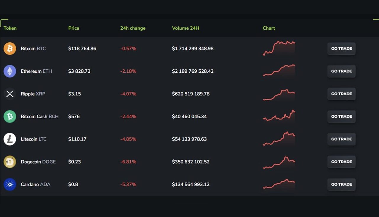 ● La piattaforma di trading ti consente di negoziare più criptovalute contemporaneamente